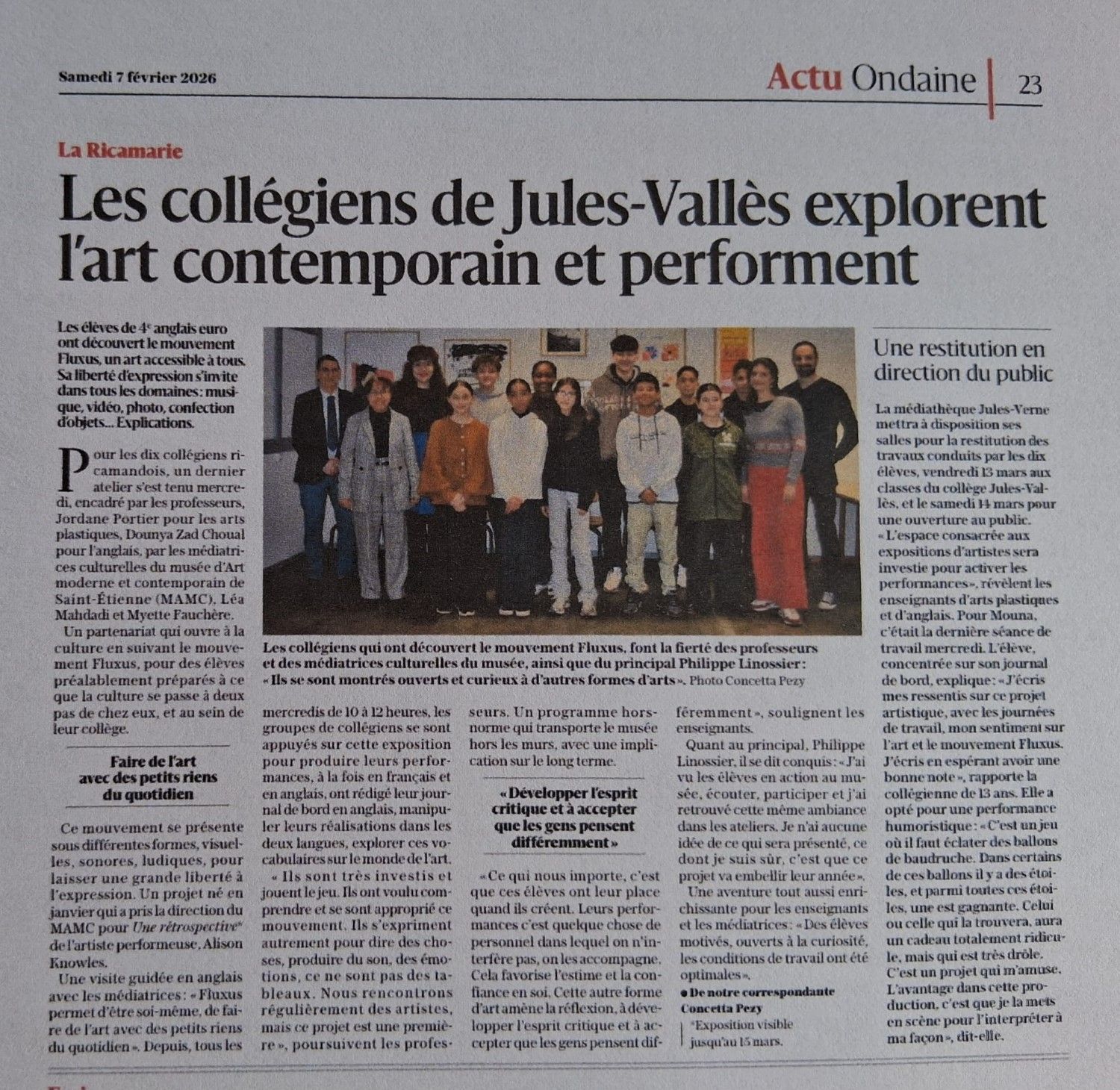 Bravo aux élèves d'Euros de quatrième, à Monsieur PORTIER, professeur d'arts plastiques, à Mme CHOUAL, professeur d'anglais, au Musée d'Art Moderne et Contemporain de Saint-Etienne Métropole et à la Médiathèque de la Ricamarie d'avoir réalisé cet ambitieux projet artistique.